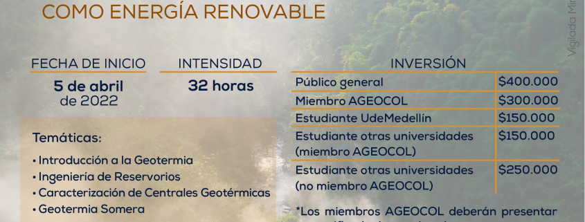 [Curso + Certificado] Sexta Versión: El Calor de la Tierra como Energía Renovable. UdeMedellín – AGEOCOL